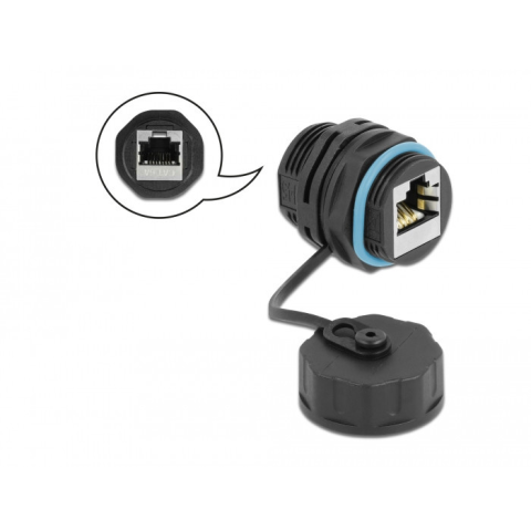 1 kép DELOCK Kábelcsatlakozó, RJ45 aljzat - RJ45 aljzat, Cat.6A, vízálló védősapkával