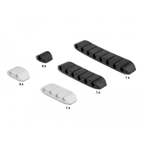 1 kép DELOCK Kábeltartó, trapéz alakú, öntapadó, kombinált készlet, 10 darab fekete / fehér