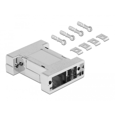 Ez a Delock keret használható egy saját elkészítésű (DIY) D-Sub 15 csatlakoztató borításának kialakításához, hogy védelmet biztosítson a kosztól és károsodástól. Műszaki adatok Alkalmas 2 db. D-Sub 15 apa és anya csatlakoztatókhoz Burkolat anya