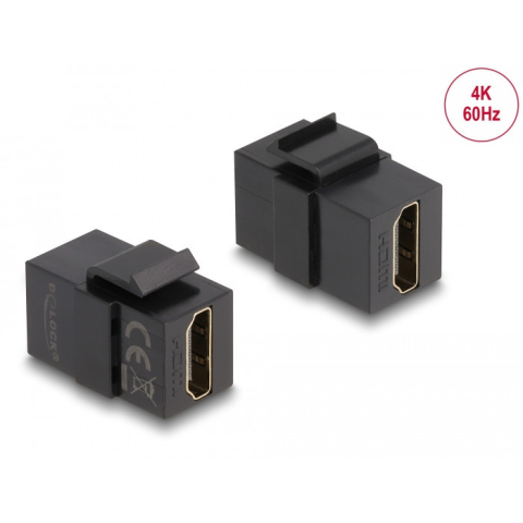 1 kép DELOCK Keystone modul, HDMI-csatlakozóhüvely > HDMI-csatlakozóhüvely, fekete