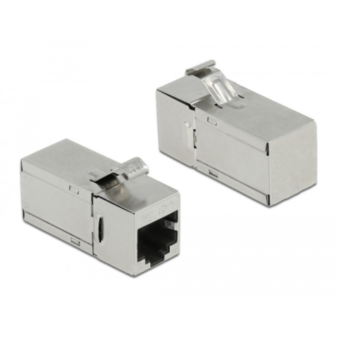 1 kép DELOCK Keystone modul, RJ45-aljzat - RJ45-aljzat, Cat.6A, 90 fokos szögű