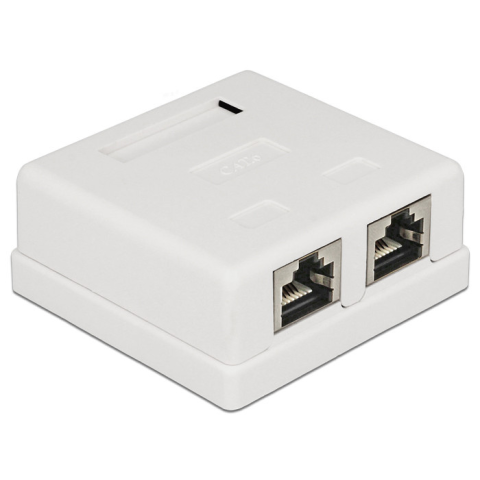 Leírás This surface mounted box by Delock can be used as a modular outlet on the wall or in enclosures. The LSA blocks can be used with a punch down tool; alternatively, a tool-free connection of the cable is possible. Műszaki adatok Connector