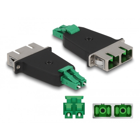 1 kép DELOCK Optikai szál hibrid párosító LC Duplex apa - SC Duplex anya zöld