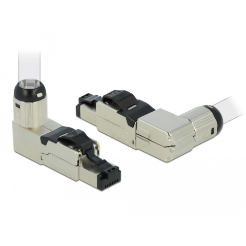 A Delock RJ45 dugaszoló szerelvény hálózati kábelek csatlakoztatására használható. A dugasz felszerelése különböző kábeltípusokra szerszám nélkül és időtakarékosan megvalósítható. A dönthető csatlakozó vég négy különböző irányban alkalmazható. Így minden