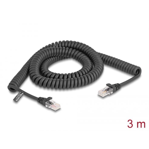 1 kép DELOCK RJ45 tekercselt kábel apa - apa Cat.5e 3 m fekete (87994) (del87994)