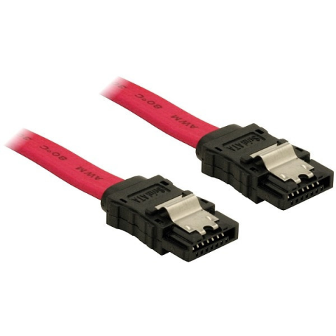1 kép DELOCK SATA piros, egyenes/egyenes csatl. (fémlappal), 70 cm-es összekötő kábel