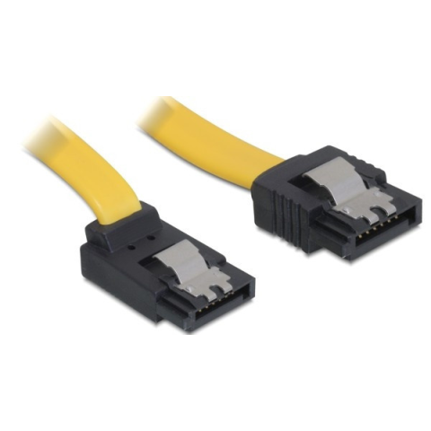 1 kép DELOCK SATA sárga, felfele/egyenes csatl. (fémlappal), 20 cm-es összekötő kábel