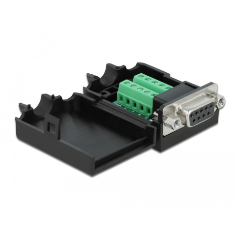 Ez a csatlakozóblokkal ellátott Delock adapter csupasz vezetékek csatlakoztatására használható. Az adapter nem csak speciális ipari célokra, hanem szabadidős tevékenységekhez (pl. vasúti modellezéshez) is megfelelő. Házzal történő védelem A műanyag há
