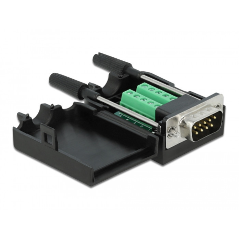 Ez a csatlakozóblokkal ellátott Delock adapter csupasz vezetékek csatlakoztatására használható. Az adapter nem csak speciális ipari célokra, hanem szabadidős tevékenységekhez (pl. vasúti modellezéshez) is megfelelő. Házzal történő védelem A műanyag há