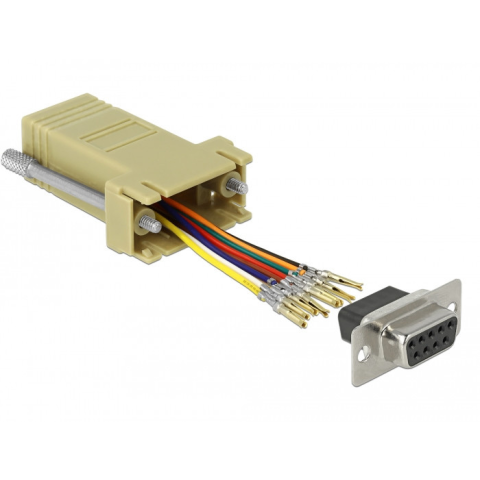 Ez a Delock adapter használható egy soros felület kibővítésére egy opcionális Cat.5 / 5e / 6 kábel használatával. Így bárki egyénileg állíthatja össze a tűösszetételt. Csupán kapcsolja össze a kábel végett a konnektor kívánt bemenetébe és zárja rá a keret