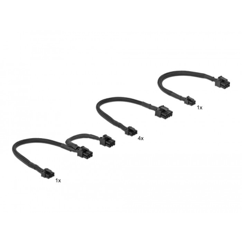 A Delock tápkábel készlet lehetővé teszi grafikus kártyák és PCI Express eszközök csatlakoztatását egy Mac Pro-hoz. A készlet tartalmaz négy 8 tűs Molex Micro-Fit-8 tűs tápkábelt, egy 8 tűs Molex Micro-Fit - kettős 6 tűs tápkábelt és egy 6 tűs Molex Micro