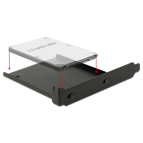 Ez a Delock telepítőkeret telepíthető a számítógép szabad nyílásába, és frissítheti a számítógépet egy további 2,5 hüvelykes rekeszért. Ingyenes nyílásba történő telepítéshez (pl. PCI vagy PCI Express) 1 x 2,5 hüvelykes meghajtóhoz (pl. HDD)