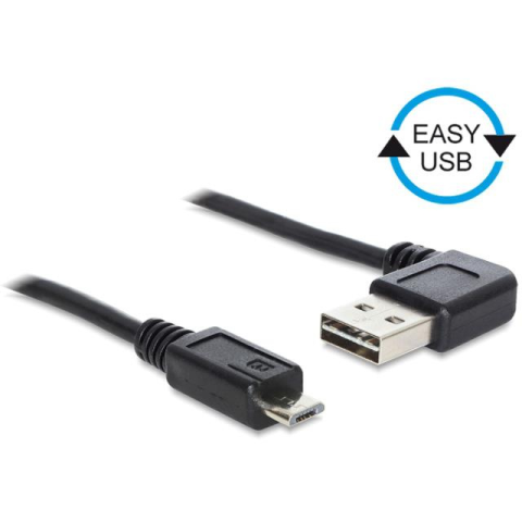 DELOCK USB 2.0 - MicroUSB kábel 0,5m - Fekete kábel és adapter 1 kép