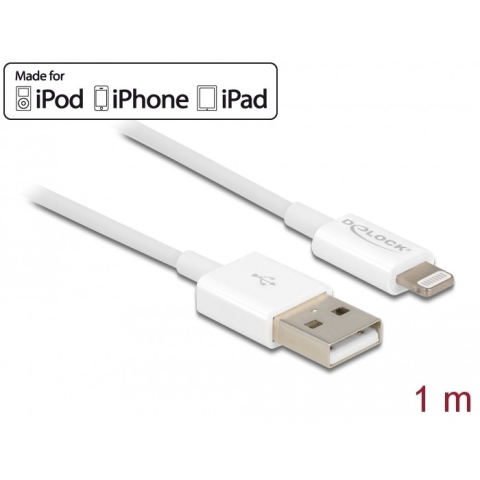 1 kép DELOCK USB adat- és töltőkábel iPhone , iPad és iPod készülékhez fehér 1 m