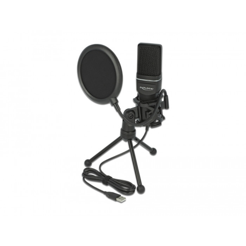 1 kép DELOCK USB csatlakozású Kondenzátoros Mikrofon Szett - podcast készítéshez, játékhoz dalrögzítéshez Mikrofon