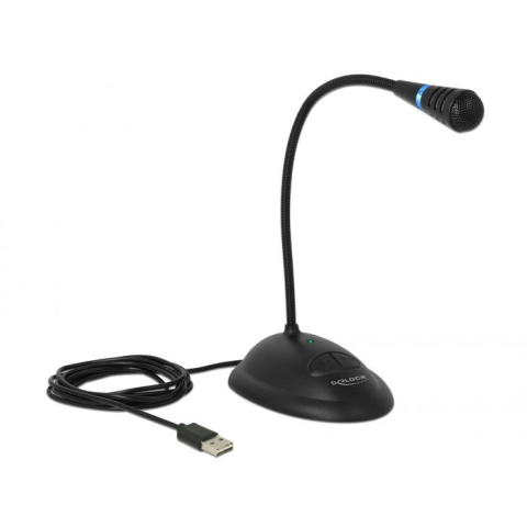 1 kép    DELOCK USB Gooseneck Microphone with base and mute + on / off button Black Mikrofon