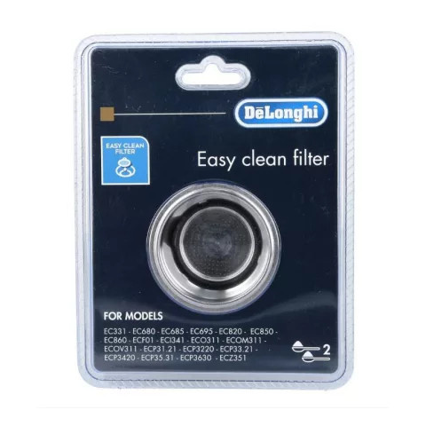 Eredeti De'Longhi kétcsészés, nyomásfokozós szűrő, amely lehetővé teszi két adag eszpresszó egyidejű lefőzését. A dupla falú kialakítás gazdag és sűrű crema réteget biztosít minden csészében.