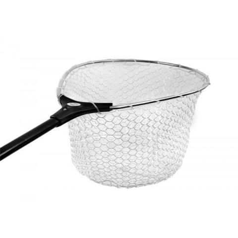 A Delphin ALUX TELE 55x45, kompakt merítőhalló teleszkópos fogantyúval. A merítőfej mérete 55cm x 45cm. A fej borítása és a fogantyú tartós műanyagból készül, a fejváz és a teleszkópos fogantyú alumíniumból. A háló szilikonból készül, szemek mérete 2,5 cm x 2,5 cm, ami nagyon kíméletes a halak számára. A praktikus, 85 cm hosszú fogantyú biztonsági retesz kioldásával könnyen összecsukható. A végén található egy ergonómikus gumi markolat. Ez a merítő
