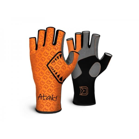 Pörgető kesztyű Delphin Atak! A 75F megvéd az erős napsütéstől, az UV-sugárzástól, de a kellemetlen szúnyogcsípéstől is. A kiváló minőségű kesztyű kialakítása még a legnehezebb körülmények között is kellemessé teszi a horgászatot. A kesztyű alsó része megerősített résszel van ellátva, és pontosan úgy van elrendezve, hogy megvédje a tenyeret a kellemetlen horzsolásoktól. A csukló felett elhelyezkedő meghosszabbított felsőrész különösen alkalmas h