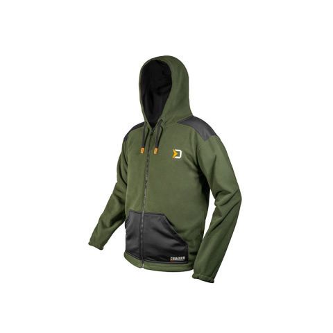 Meleg, kényelmes és elegáns. Ezek a Delphin CRUISER FLIX kapucnis pulóver főbb tulajdonságai. Ahogy a nevéből is látható, ez a termék egy újabb darab a fleece sorozatunkból. Anyaga nagyon meleg és puha tapintású. Az ujjak végén gumi mandzsetta található