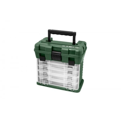 A Delphin TBX MegaCase Clip egy érdekesen megoldott koffer, melyben 4 műanyag doboz elhelyezhető. Nagyon jól elhelyezhető bennük a csali vagy egyéb horgász kellék. Egy műanyag csattal záródik, mely erősen tartsa a felső kinyitható részt. Ez alatt elegendő hely van minden szükséges kellék elhelyezésére melyre a horgásznak szüksége van. Elől egy átlátszó nyitható rész van, mely alatt a 4 egyforma nagy műanyag doboz van, mely a koffer része. A doboz műanyag rekesze