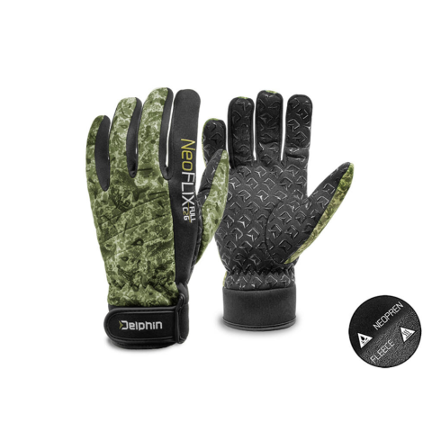 A Delphin NeoFLIX neoprén kesztyű a tökéletes kiegészítő a keze melegen és szárazon tartásához. A standard neoprén kesztyűkkel ellentétben, ennek a kesztyűnek a belseje gyapjú béléses, ami új szintre emeli a téli horgászat kényelmét. Nagy előnye még a tenyérrész csúszásgátló felülete, amely Delphin márkalogókkal díszített gumírozott réteggel van ellátva.