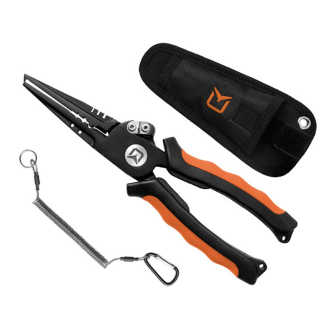 Hossza 18cm. A fogók belső felülete elegendő tapadást biztosít a nagy dupla és hármas horgok megfogásához. Rozsdamentes acélból készül, és mindkét fogantyú narancssárga és fekete műanyaggal van felszerelve, amely bármilyen körülmények között könnyen látható, és jól illeszkedik a kezedbe. A PROFISET fogóinkkal most biztonságosan eltávolíthatja horgokat, kinyithatja a kulcskarikákat, vághatja a zsinórt vagy krimpelheti 9mm-ig. A fogók praktikus fekete övtasa