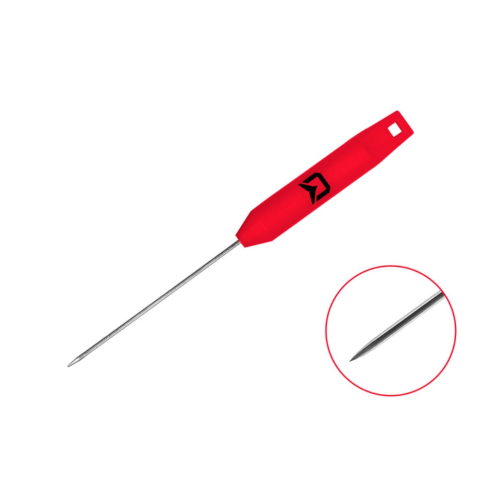 A Delphin SLIM QuickSTOP egy vékony feeder fűzőtű elsősorban quickstop ütköző használatakor. A vékony hegyes fém rész és horog segítségével apró csalikat is fel tud fűzni. A 40mm hosszú fém rész a minimális átmérője ellen elegendően erős és rugalmas. A piros műanyag fogó része fekete logóval kényelmes használatot biztosít. A színének köszönhetően mindig jól látható lesz a horgászfelszerelései között.