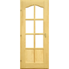 Fenyő íves kazettás XÉNA beltéri ajtó, 6 üveghelyes. Mérete: 90x210 cm. Nyitásirány: bal (Nyitásirány meghatározása, jobbos, balos ajtó/ablak: Szembe kell állnunk az ajtóval/ablakkal, úgy hogy felénk nyíljon. Amelyik kezünk felé esnek az ajtó/ablak pántjai (zsanérjai), olyan nyitásirányú az ajtó/ablak.) Hossztoldott lucfenyő ajtólap és 12-es lucfenyő pallótok, vasalat: 16-os ajtópánt, normál bevéső zár ELZETT. Tartozékok: zár, zárbetét, kulcs. Kilincs