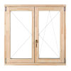 Delta-therm középen-felnyíló bukó-nyíló faablak. Mérete: 120x150cm, jobbos. Tartozéka: eloxált ablak félkilincs. Szerkezeti vastagság: 68 mm vastag borovi fenyő. Szerkezeti felépítés: 68 mm-es EURO falcos hossztoldott és szélességi toldott rétegragasztott csomómentes BOROVI fenyő. Tömítés: szárnyban körbefutó EPDM alapanyagú zártcellás gumitömítés. Vasalat: GU bronz eloxált vízvető. Üvegezés: 4-16-4 Low-e +Argon Ug=1,1 W/m2K hőszigetelt üveggel. Felületk
