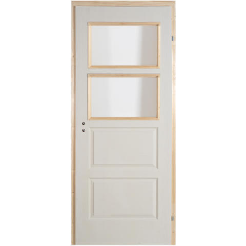 Kréta pallótokos, két üveghelyes beltéri ajtó. Mérete: 90x210cm. A lemezelt ajtólap fehér alapmázolt frontlemezből készül. Nyitásirány: jobb (Nyitásirány meghatározása, jobbos, balos ajtó/ablak: Szembe kell állnunk az ajtóval/ablakkal, úgy hogy felénk nyíljon. Amelyik kezünk felé esnek az ajtó/ablak pántjai (zsanérjai), olyan nyitásirányú az ajtó/ablak.) Tartozékok: zár, zárbetét, kulcs. Kilincs nélkül értékesítjük!