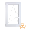 Műanyag ablak, bukó-nyíló, balos, fehér színben. Mérete: 60x120cm. Szerkezet: 5 légkamrás, 70mm beépítési mélységű, 2,8mm falvastagságú műanyag profil, körbefutó fém merevítéssel, kettős szürke gumitömítéssel, üvegezés: 4+16+4 Low-e+Argon Ug=1,0 W/m2K. Vasalat: Winkhaus résszellőző funkcióval. Tartozéka egy fehér ablak félkilincs.