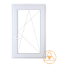 Műanyag ablak, bukó-nyíló, jobbos, fehér színben. Mérete: 60x120cm. Szerkezete: 5 légkamrás, 70mm beépítési mélységű, 2,8mm falvastagságú műanyag profil, körbefutó fém merevítéssel, kettős szürke gumitömítéssel Üvegezése: 4+16+4 Low-e+Argon Ug=1,0 W/m2K, vasalat: Winkhaus résszellőző funkcióval. Tartozéka egy fehér ablak félkilincs.