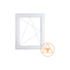 Műanyag ablak, bukó-nyíló, balos, fehér színben. Mérete:60X90CM. Szerkezete: 5 légkamrás, 70mm beépítési mélységű, 2,8mm falvastagságú műanyag profil, körbefutó fém merevítéssel, kettős szürke gumitömítéssel. Üvegezés: 4+16+4 Low-e+Argon Ug=1,0 W/m2K. Vasalat: Winkhaus résszellőző funkcióval. Tartozéka, egy fehér ablak félkilincs.
