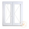 Műanyag ablak, középen felnyíló/bukó-nyíló, balos, fehér színben. Mérete: 120x150cm. Szerkezet: 5 légkamrás, 70mm beépítési mélységű, 2,8mm falvastagságú műanyag profil, körbefutó fém merevítéssel, kettős szürke gumitömítéssel. Üvegezés: 4+16+4 Low-e+Argon Ug=1,0 W/m2K, vasalat: Winkhaus résszellőző funkcióval. Tartozéka egy fehér ablak félkilincs.