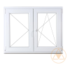 Műanyag ablak, középen felnyíló/bukó-nyíló, jobbos, fehér színű. Mérete: 150x120cm. Szerkezet: 5 légkamrás, 70mm beépítési mélységű, 2,8mm falvastagságú műanyag profil, körbefutó fém merevítéssel, kettős szürke gumitömítéssel. Üvegezés: 4+16+4 Low-e+Argon Ug=1,0 W/m2K, vasalat: Winkhaus résszellőző funkcióval. Tartozéka egy fehér ablak félkilincs.