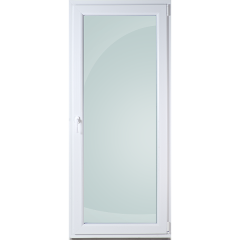 5 légkamrás műanyag bukó-nyíló erkélyajtó, jobbos kivitel, kilinccsel. Mérete: 90x210cm, 70 mm vastag pvc profil. Winkhaus vasalat, sarokvégtelenített gumitömítés, hőszigetelt üvegezés 1,1 w/m2k.