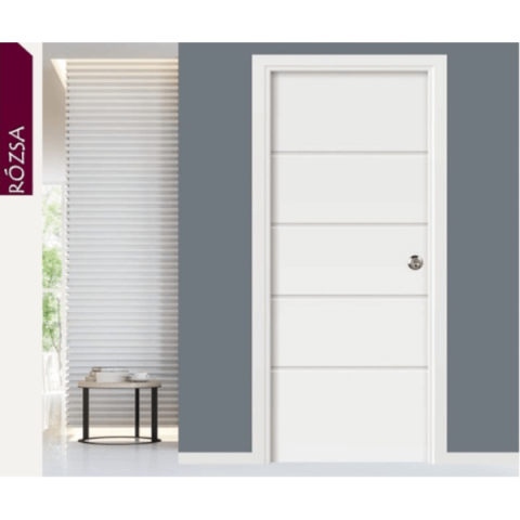 Lemezelt beltéri ajtó RÓZSA gerébtokkal. Fehér alapmázolt, mintanyomott frontlemez borítás. Méret: 90x210 cm. Nyílásirány: bal (nyílás írány meghatározása: szembe kell állnunk az ajtóval/ablakkal, úgy hogy felénk nyíljon. Amelyik kezünk felé esnek az ajtó/ablak pántjai (zsanérjai), olyan nyitásirányú az ajtó/ablak.) Tartozékok: zár, zárbetét, kulcs. Kilincs nélkül értékesítjük!