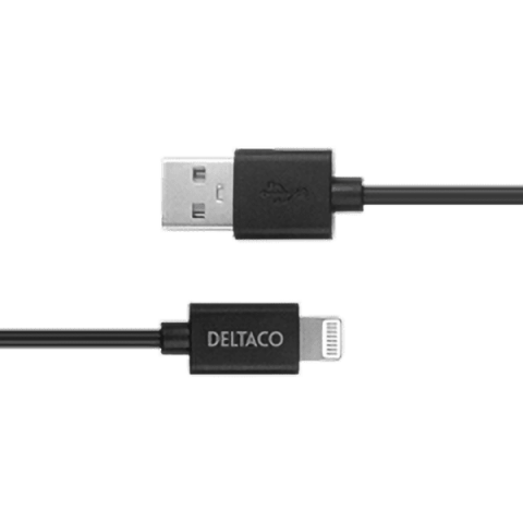 1 kép Deltaco USB-A apa - Lightning apa Adat- és töltőkábel 1m - Fekete (IPLH-411)