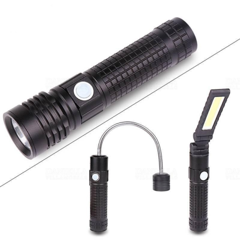 Rúdlámpa műanyag dobozban. Akkumulátoros 1x18650 3db különböző cserélhető fejjel 350 Lumen Mágneses vég Ház színe: fekete