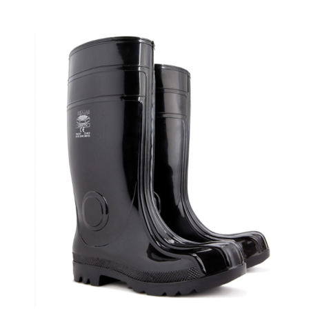 Hosszú szárú PVC csizma fekete színben, kivehető filc talpbetéttel és minősített csúszásmentes talppal. Szabvány: EN ISO 20347:2012 OB