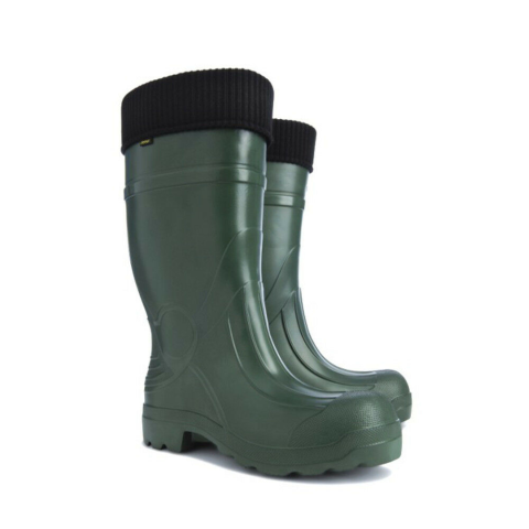 4 pár / kartonHosszú szárú pehelykönnyű EVA csizma zöld színben, kivehető - mosható béléssel, hőszigetelő hatás akár -30 °C-ig. Nagyon kényelmes és ideális választás a hideg, csapadékos napokra.