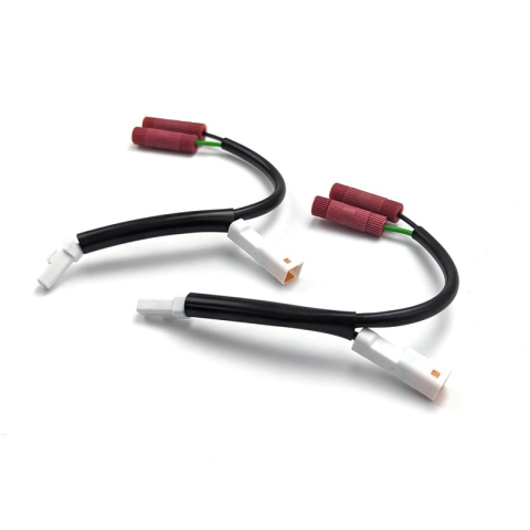 Ez a kábeladapter a gyári irányjelző csatlakozóknál csatlakozik, lehetővé téve az utólagos irányjelzők egyszerű csatlakoztatását a Ducati DesertX-hez. A zöld vezeték az irányjelző kimenetet biztosítja, a fekete vezeték pedig a földelést.Ha DENALI switchback irányjelzőket szerel be, használja a mellékelt posilock csatlakozókat a fekete és zöld vezetékek megfelelő színű T3 vezetékekhez való csatlakoztatásához. A féklámpa és a kapcsolt áramellátás kábela