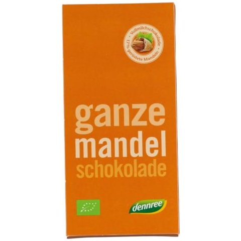 Dennree bio tejcsokoládé egész mandulával 100 g Tejcsokoládé egész mandulával