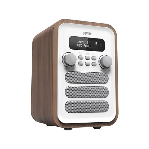 Rádió - klasszikus, hordozható, DAB+, FM és RDS tuner 40 előre beállítható csatorna, 2,5 W teljesítmény, 3,5 mm Jack kimenet, automatikus kikapcsolás, sleep és snooze, Bluetooth, ébresztőóra, kijelző és óra, távirányító a csomag része, hálózati tápellátás, klasszikus design, mérete 165 × 108 × 125 mm (Ma×Sz×Mé), tömege 1,2 kg, fekete és barna kivitel Eme Denver rádió egy egyszerűen hordozható, megbízható és kiváló minőségű készülék, melyen kény