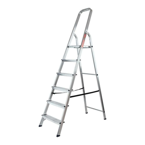 Alumínium profilú szobalétra 150kg maximális terhelésselErős, széles, kényelmes fokokkal, csúszásgátlós talppal igazi segítség otthon, a műhelyben, présházakban, vagy felújításkor.Könnyű súly, csak 5,1kg. Elérhető biztonságos munkamagasság 323cm.