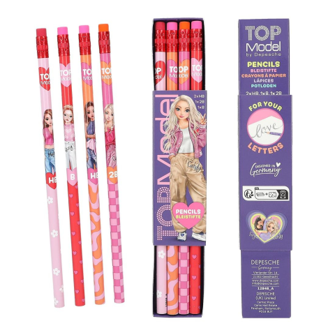 A ceruzakészlet négy ceruzából áll, vidám, színes dizájnnal és remek modellmotívumokkal. Különböző keménységi fokozatok: 2x HB, 1x 2B és 1x B.