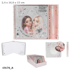 Ez a kis TOPModel írókészlet sok mindent kínál: gyönyörű ezüst színű csillogó borító, rejtett tükör, finom vonalú oldalak édes illusztrációkkal és ezüst színű toll, rózsaszín kupakkal.Cikkszám