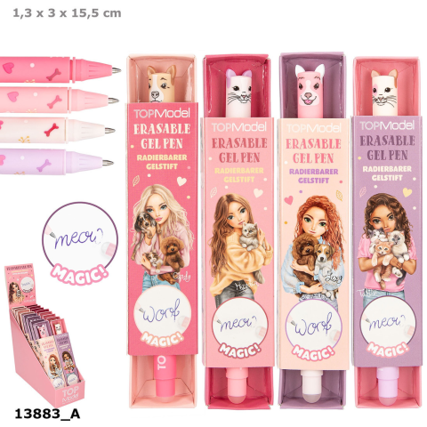 Írj, radírozz, és írd újra! Ez lehetséges a TOPModel radírozható zselés tollaival. Egyszerűen dörzsöld át a toll kerek műanyag végével az írást, és már ki is törlődik (hőérzékeny tinta). Minden toll egy igényesen megtervezett kartondobozba van csomagolva, egy szalaggal ellátva.