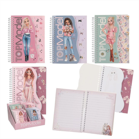 A praktikus, spirálkötésű TOPModel füzetek perforált részében TOPModel figurákkal ellátott oldalak találhatók a spontán ruhatervezéshez, valamint finom vonalú és gyönyörűen illusztrált vonalas oldalak a gyors jegyzetekhez. Négy különböző minta, mindegyik